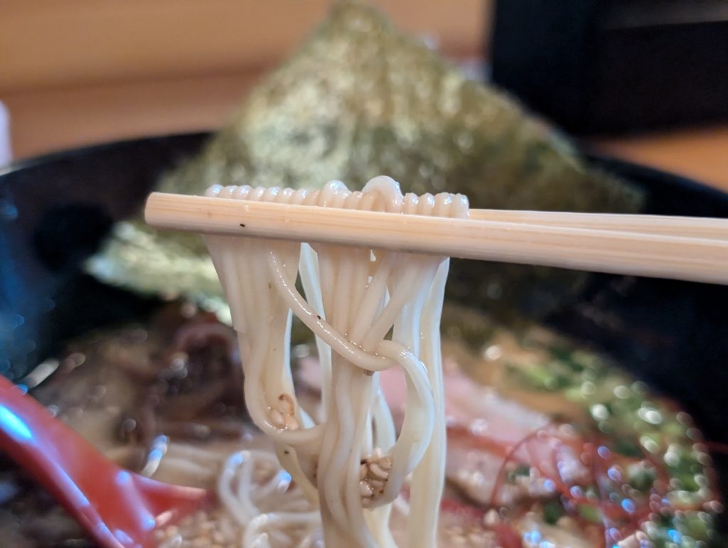 麺はストレート細麺なのにスープがしっかり絡み、麺がスープを引き上げていました。