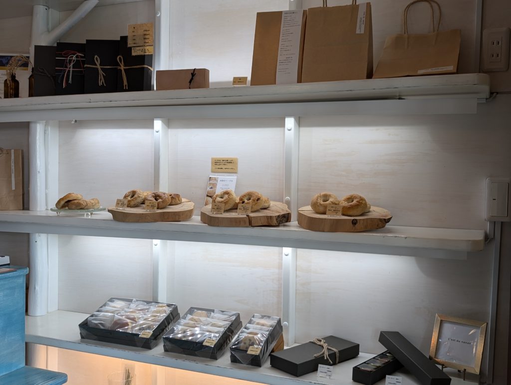 贈答用などの焼き菓子や米粉のベーグルも販売されています。