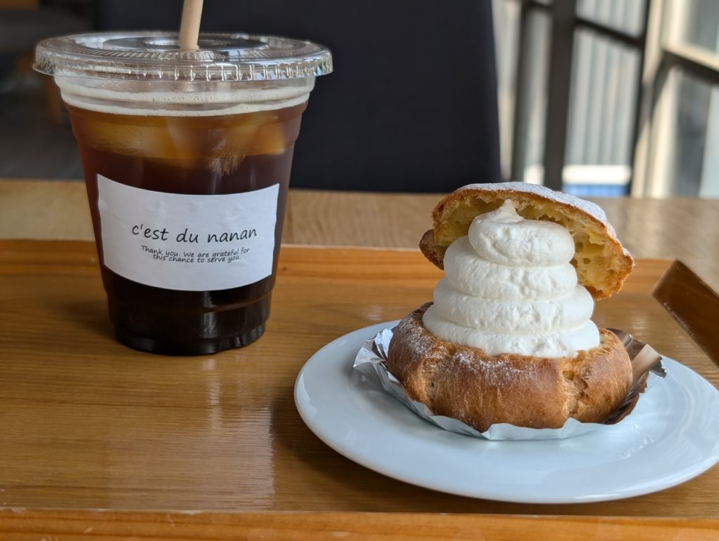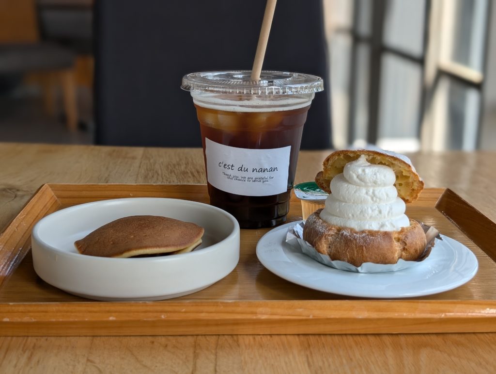 くるくるシュークリームと米粉どらやきとアイスコーヒーをイートインしました。