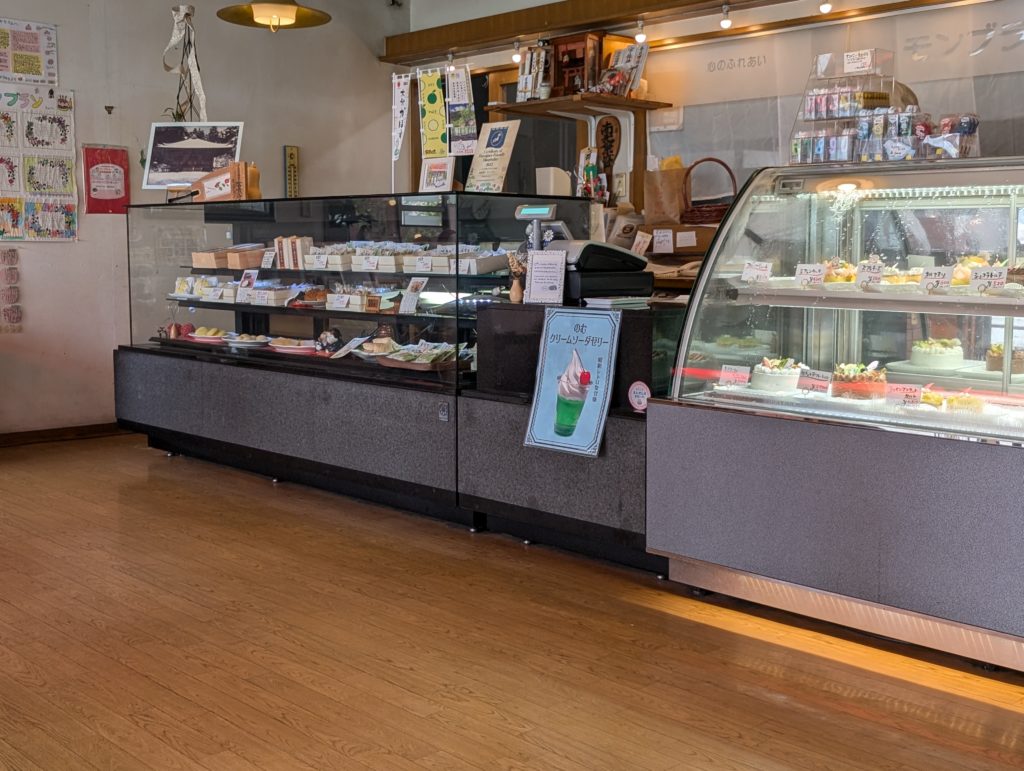 店内に入ると目の前にケーキのショーケース、奥に進むと和菓子のショーケースがあり、洋菓子、和菓子ともに充実しています。