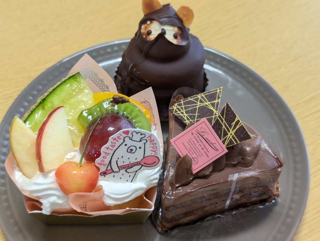 購入したのはぽんぽこ、シフォンケーキとショコラトルテです。
