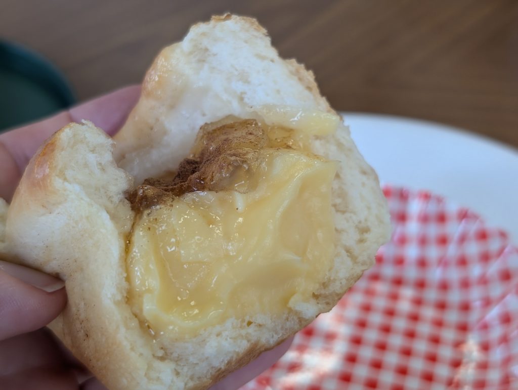 アッブルカスタードパン(150円)はふわふわの生地の中にたっぷりのカスタードクリームが入っていて、とろ~っとした優しい甘さのクリームが口の中でとろけました。