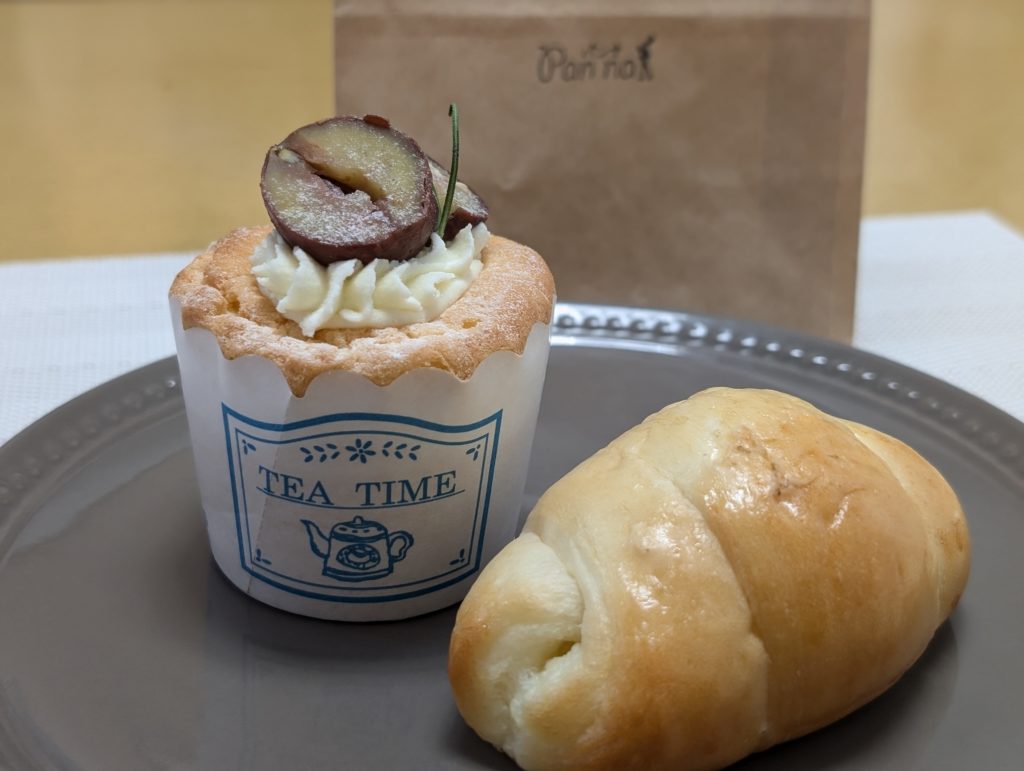 塩パンとクリームシフォンケーキを購入しました。シフォンケーキの中にはクリームがたっぷりはいっいて、生地はしっとりなのにふわふわで絹のような口どけでした。