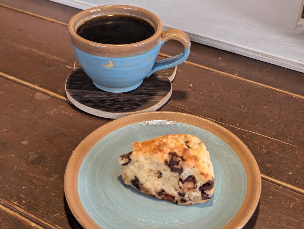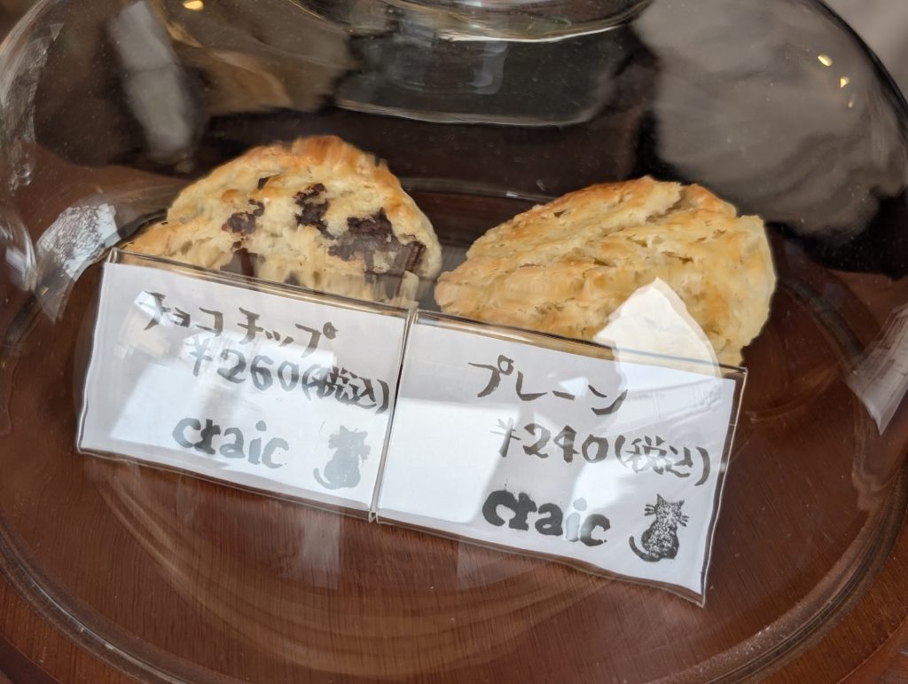 チョコチップのスコーン(260円)とコーヒー(400円)をイートインしました。