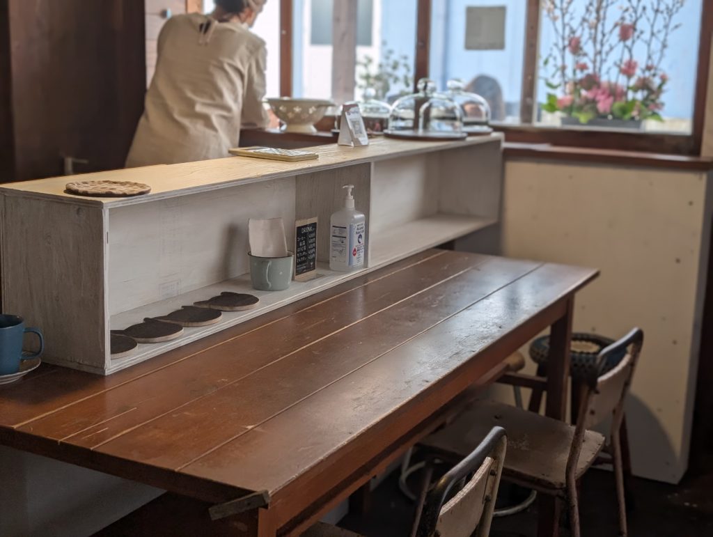 息詰まったとき、誰かと関わりたいときに店主のチッペさんとお話ししながら、スコーンやドリンクを楽しむことが出来ます。店内はこぢんまりとしているため4席ほどのお席となっています。