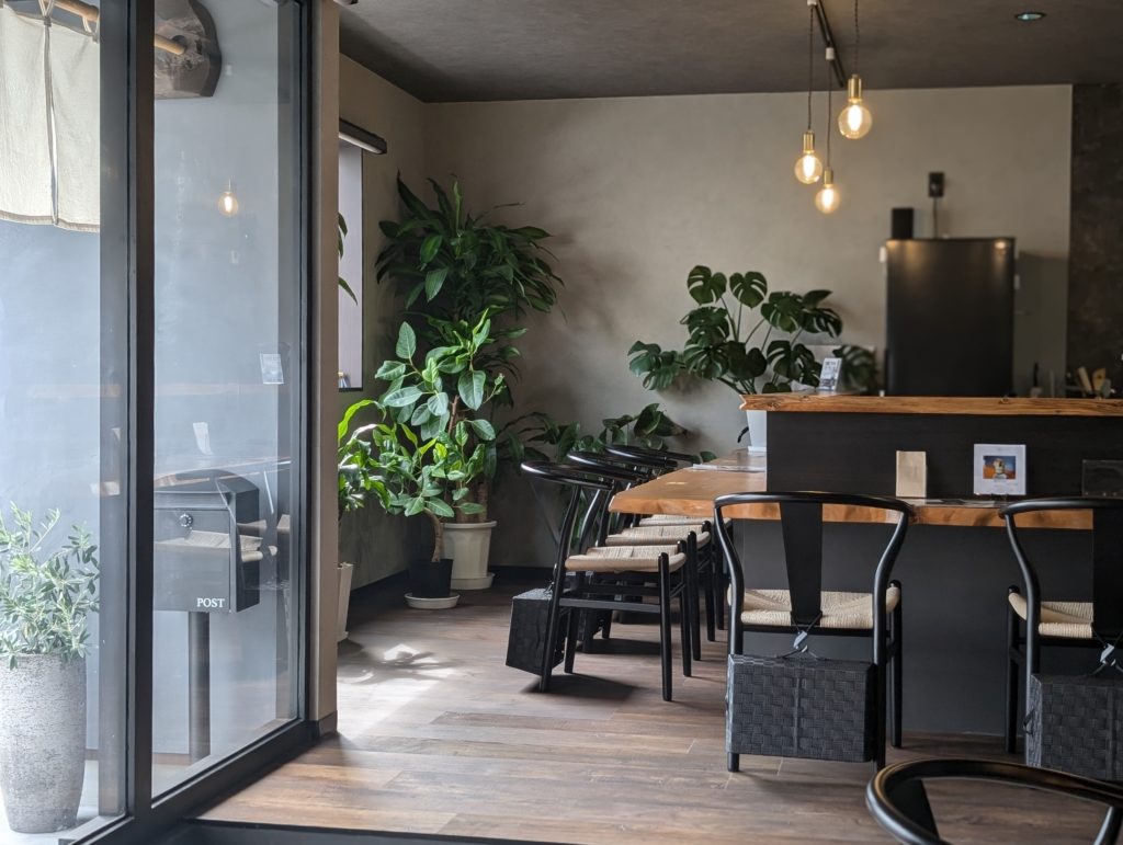店内に入ると和モダンで穏やかな空間です。カウンター席とテーブル席があり、テーブル席に座ると大きな窓があるので外からの光が感じられ開放感があります。