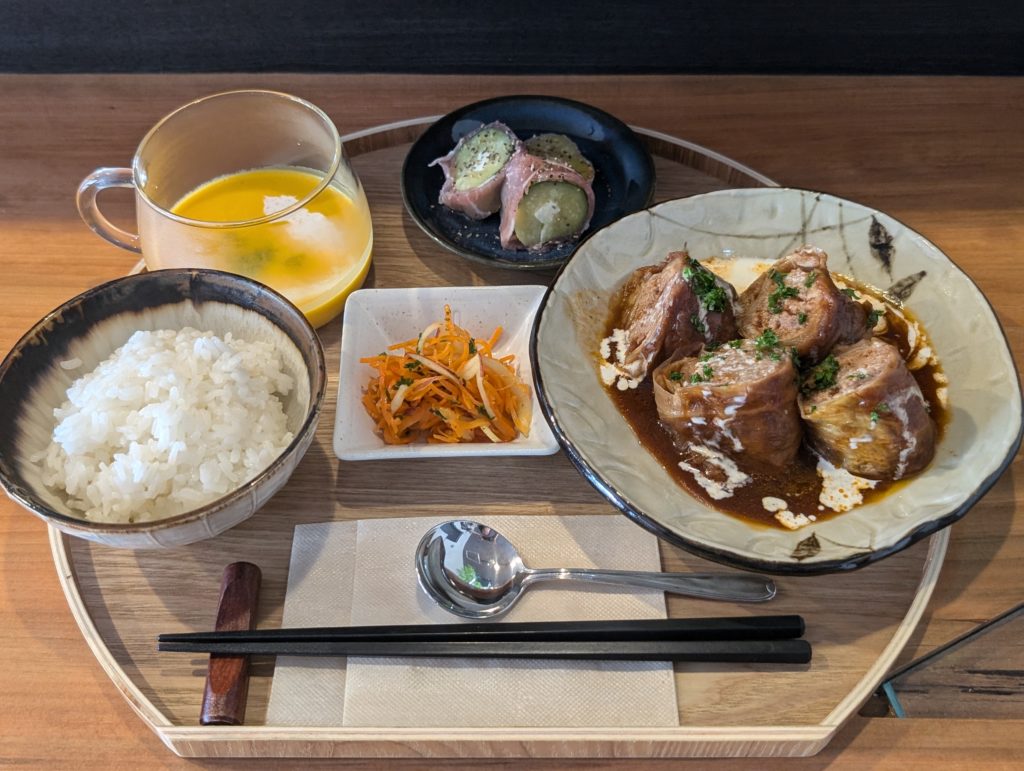 メインはロールキャベツでした。赤ワインソースで煮込んでいるソースは爽やかな酸味と甘みが口の中に広がりました。