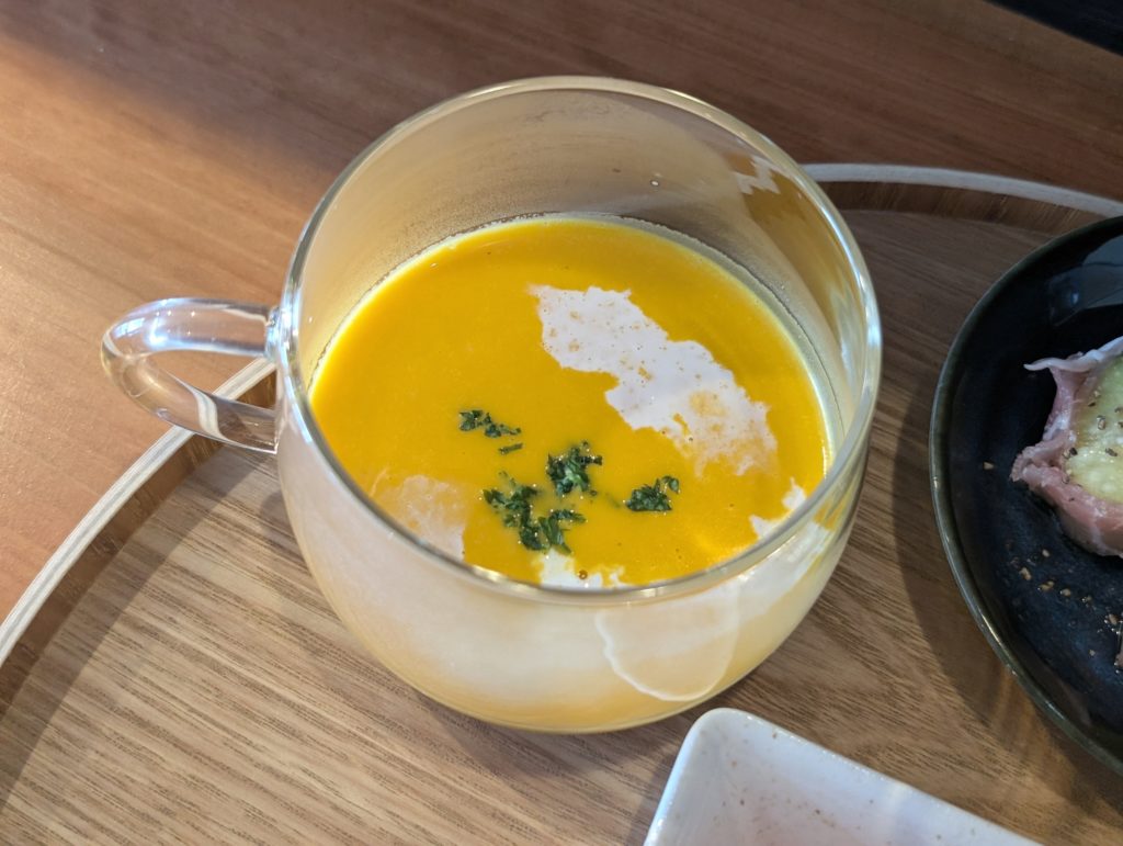 かぼちゃのポタージュはなめらかな口当たりで優しい甘さを感じました。