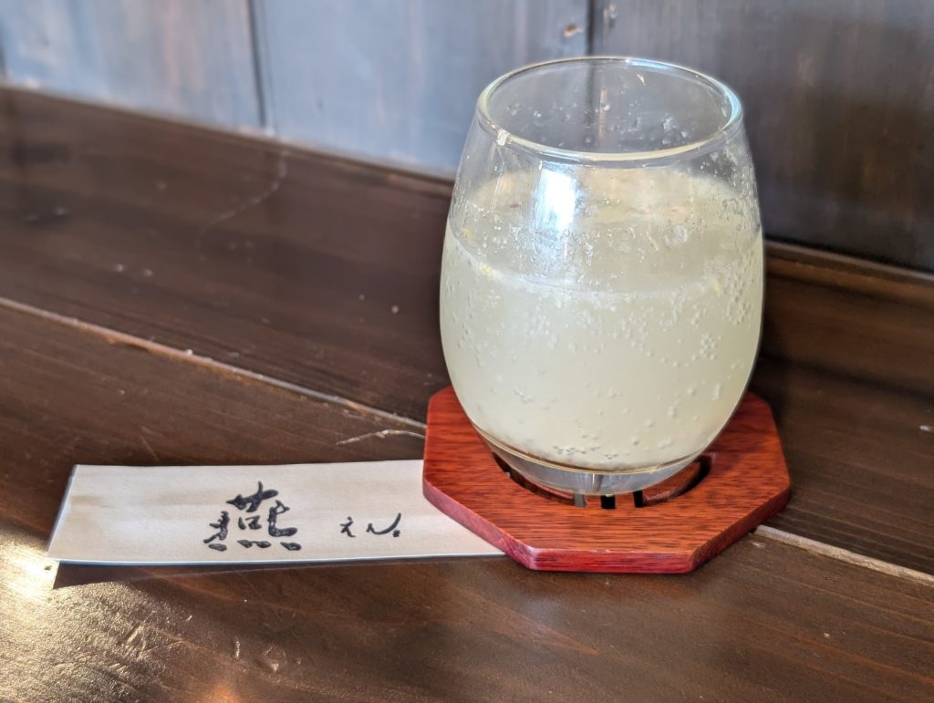 セットのドリンクはコーヒー、紅茶、オレンジジュース、りんごジュース、酵素ドリンクと選べ、酵素ドリンクにしました。この日の酵素はかぼすと梨でした。梨の甘さの中にかぼすの爽やかさがあり、さっぱりとした味でした。