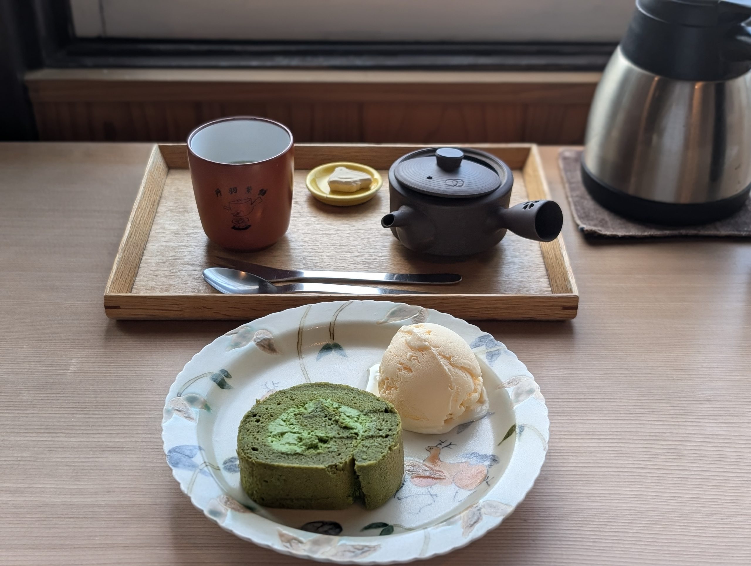 抹茶ロールケーキセット(バニラアイス添え)950円を注文しました。