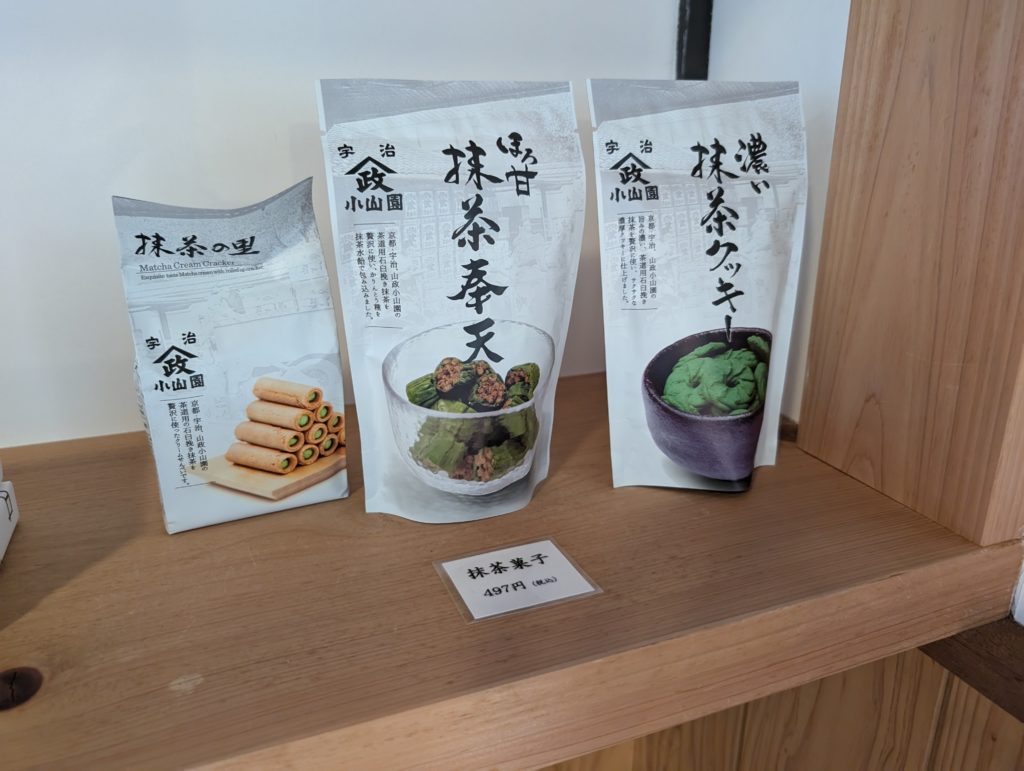 店内ではお茶や茶器、茶菓子を販売しています。お土産に喜ばれそうですね。