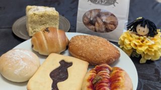 大分県中津市大塚にある「くろねこパン」。こぢんまちとした店内でどのパンもリーズナブルでもっちり食感で優しい甘さが広がります。